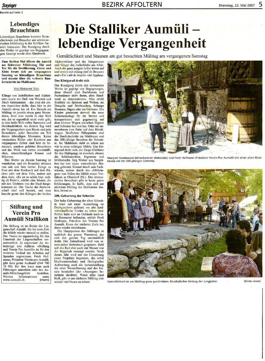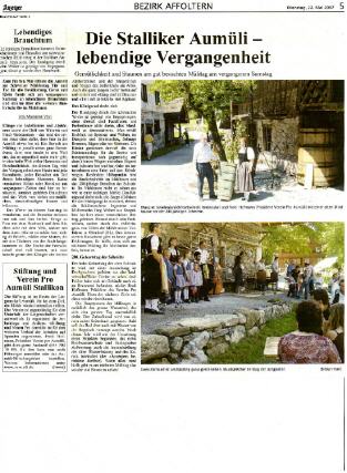 Die Aumüli stellt ein repräsentatives Beispiel von Bauten des traditionellen Müllergewerbes samt Landwirtschaftsbetrieb dar. Sie ist die letzte erhalten gebliebene Mühle samt Wasserrecht, Wasserrad, Mühlestuhl und Säge im Knonaueramt und liegt in einem landschaftlich reizvollen Abschnitt des Reppischtals.