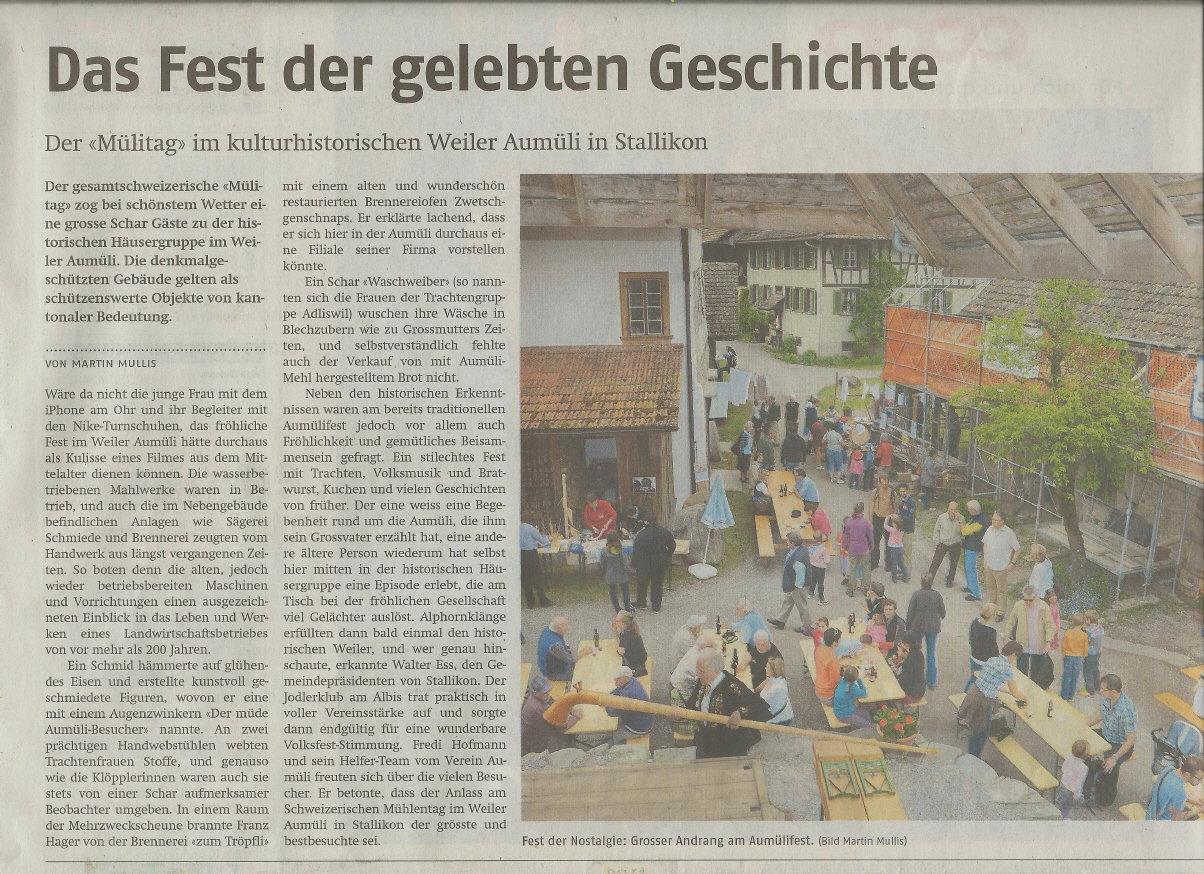 Die Aumüli stellt ein repräsentatives Beispiel von Bauten des traditionellen Müllergewerbes samt Landwirtschaftsbetrieb dar. Sie ist die letzte erhalten gebliebene Mühle samt Wasserrecht, Wasserrad, Mühlestuhl und Säge im Knonaueramt und liegt in einem landschaftlich reizvollen Abschnitt des Reppischtals.